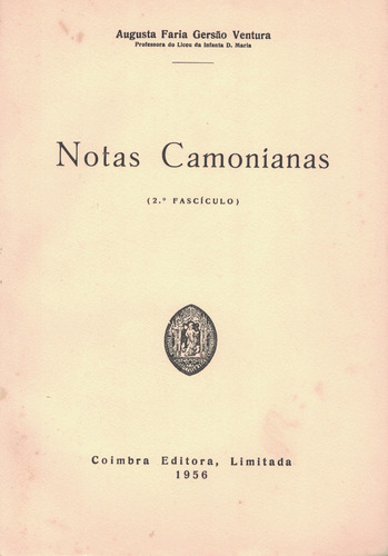Notas Camonianas (2.º Fascículo) | de Augusta Faria Gersão Ventura