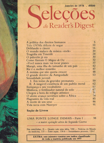 • Seleções do Reader's Digest - Tomo XIV - N.º 81 - Janeiro de 1978