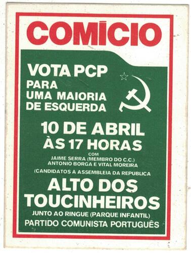 Autocolante - Comício - Vota PCP para uma Maioria de Esquerda
