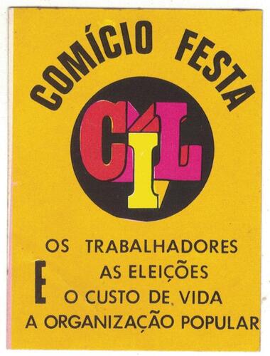 • Autocolante - Comício Festa - CIL - Os Trabalhadores, as Eleições e o Custo de Vida - A Organização Popular