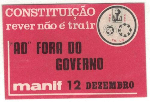 Autocolante - Constituição Rever Não é Trair - "AD" Fora do Governo - Manif 12 Dezembro