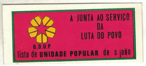 • Autocolante - G.D.U.P. - A Junta ao Serviço da Luta do Povo - Lista da Unidade Popular de S. João