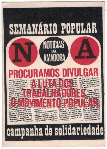 Autocolante - Semanário Popular Notícias da Amadora - Procuramos Divulgar a Luta dos Trabalhadores, o Movimento Popular - Campanha de Solidariedade