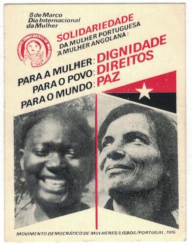 Título: Autocolante 8 de Março Dia Internacional da Mulher - Solidariedade da Mulher Portuguesa à Mulher Angolana - Movimento Democrático de Mulheres / Lisboa / Portugal, 1976